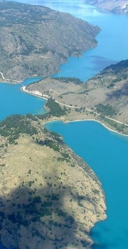 El lago General Carrera es el más grande del territorio chileno. Con 978 km2 de superficie y 200 km de largo, sus aguas se encuentran divididas entre el territorio de Chile y Argentina; conociéndose como Lago General Carrera del lado chileno, y Lago Buenos Aires del lado argentino. Su nombre original en idioma tehuelche (lengua aborigen) era Chelenko, que significa "lago de las tempestades".